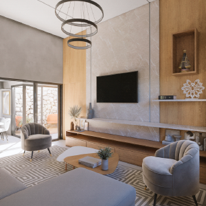 Trabalhamos com projetos de interiores, executando Projeto Básico de interiores com detalhamento para execução do mesmo.